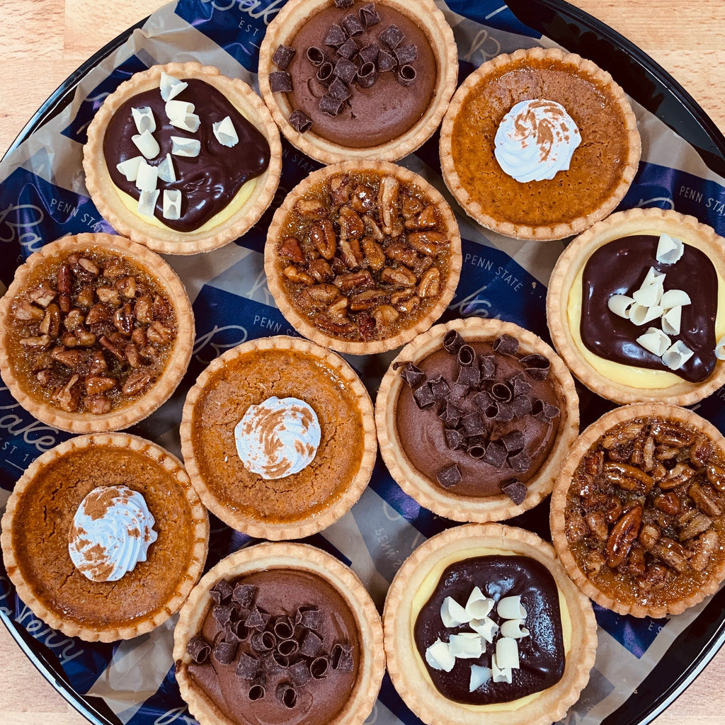 Can't decide? There's no need to choose with this Mini Pie Platter! It features a variety of pies to satisfy everyone's tastes, including three of each: Pumpkin, Pecan, Chocolate Mousse, and Boston Cream.